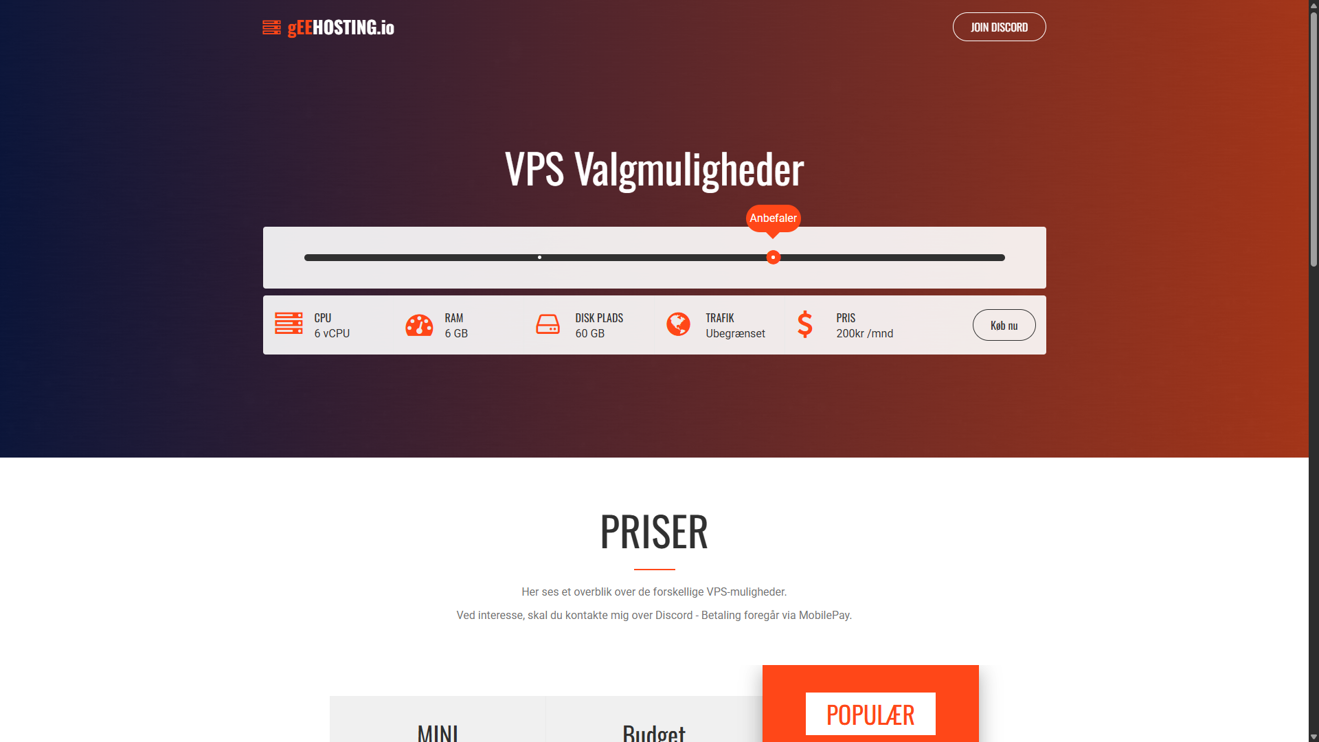 A website for a hobby project where I rented out VPS servers to friends and family.