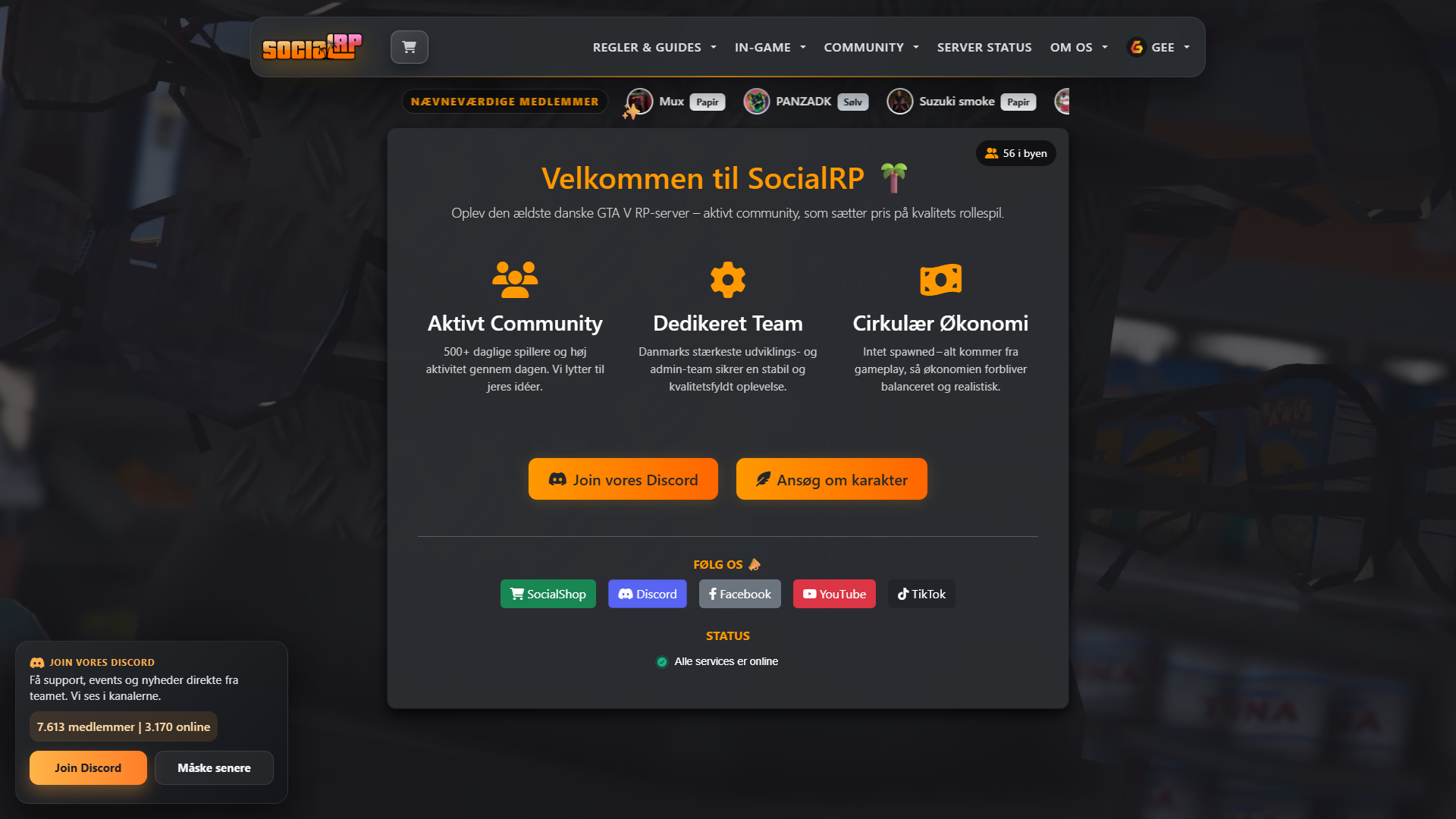 A Danish GTA5 online roleplaying community formed in 2018 with 15,000+ registered members.